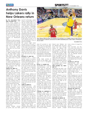 rebounds for the Pelicans, Houston led by double dig- BUCKS 111, HAWKS 102 highs for the center. Domantas Sabonis and