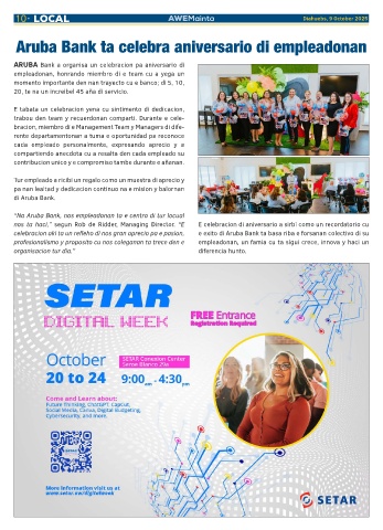 celebracion aki ta un refleho di nos gran aprecio pa e pasion, e exito di Aruba Bank ta basa riba e forsanan colectivo di su