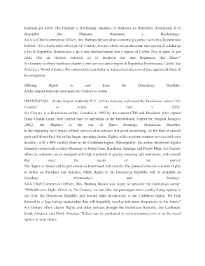 domestic routes such as Santo Domingo to Punta Cana, Barahona, Santiago and Puerto Plata. Air Century