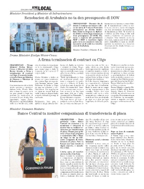 Infrastructura. aki, a tuma luga un negocia- tento y orguyoso cu porfin E di dos trayecto importante pero tambe pa henter Aruba”,