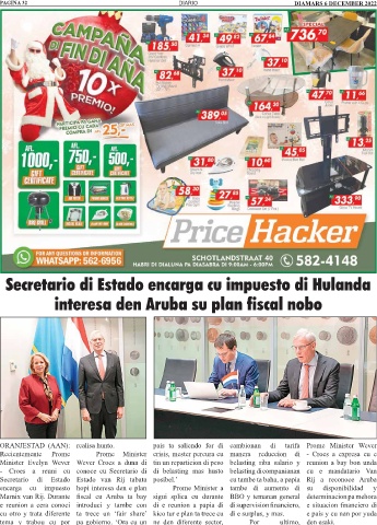 ORANJESTAD (AAN): realisa hunto. pais ta saliendo for di cambionan di tarifa Prome Minister Wever