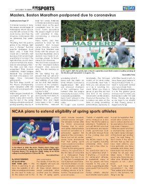 Baseball has postponed We are taking the ap- the Masters golf tournament in Augusta, Ga. Associated Press