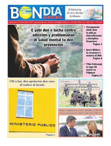 Diaranson 5 di November 2025 www.bondia.com Email: noticia@bondia.com Tel: 582-7800 Fax: 582-7044 1,75 Florin