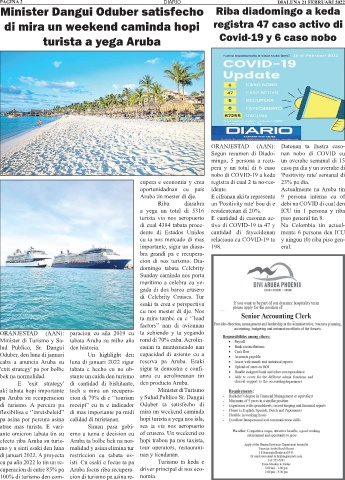 Minister di Turismo y Sa- tabata Aruba su miho aña rond di 70% caba. Aerolin-