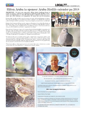 Hilton Aruba ta sponsor Aruba Birdlife calender pa 2018