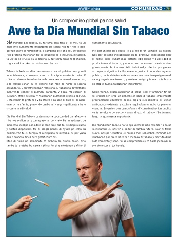 DÍA Mundial Sin Tabaco, cu ta tuma luga riba 31 di mei, ta un humamento secundario.