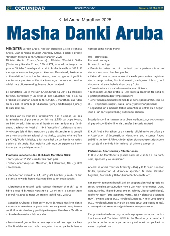 Puntonan importante di e KLM Aruba Marathon 2025: E KLM Aruba Marathon ta posibel danki na e sosten di su part-