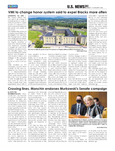 students at VMI were ex- of expelled rose to 15, or ic year, reported Friday ago because of com- The 145-page report com-