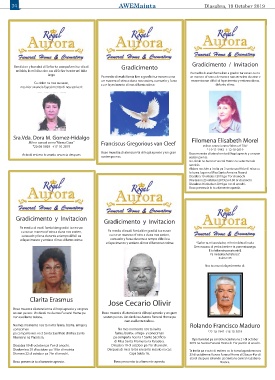 Diasabra 19 di october pa 7’or di anochi. Diasabra 19 di october pa 7’or di anochi. 2019 na Aurora Funeral Home di 7’or pa 9’or di anochi.