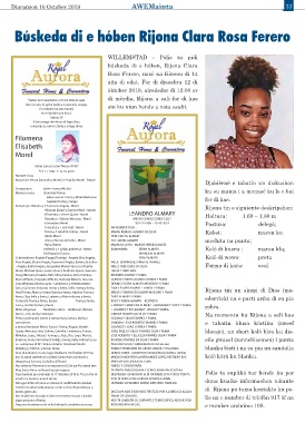 Acto di entierro lo tuma lugar Diabierna 18 Oktober 2019 pa DEMAS FAMIA : ALMARYDA SILVADONATA GOMEZ JANGA