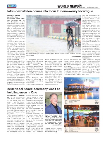 nications were restored. A man rides his bicycle under the rain brought by Hurricane Iota, in La Lima, Honduras, Tuesday, areas were evacuated, as