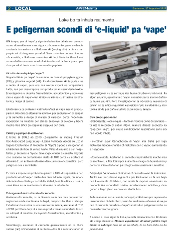 E peligernan scondi di ‘e-liquid’ pa ‘vape’