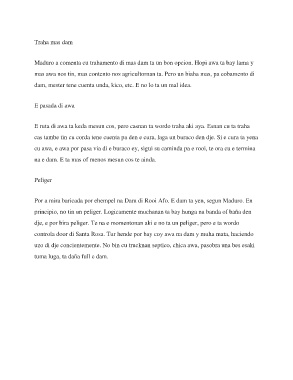 cu awa, e awa por pasa via di e buraco ey, sigui su caminda pa e rooi, te ora cu e termina