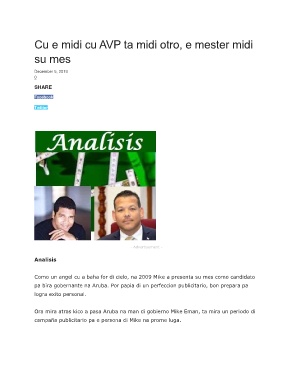 pa bira gobernante na Aruba. Por papia di un perfeccion publicitario, bon prepara pa