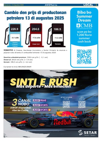 prijsnan nobo di benta di combustibel entrante 13 di augustus 2025: