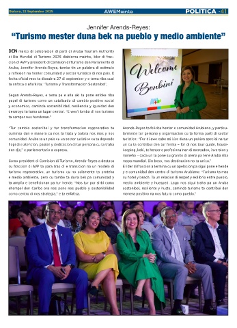 comunidad. Aruba ta un pais cu un sector turistico cu ta depende turistico: “For di awe caba mi kier duna un pabien special na tur