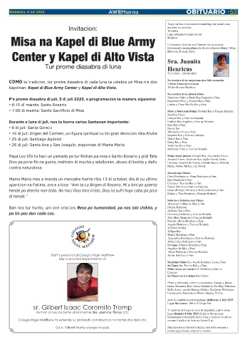 • 6:15 di mainta: Santo Rosario Lisette y Cesar Revilla Ras y Fam