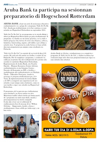 sesion. Di cual seis (6) sesion na Aruba y cuater (4) na programa di ‘Subi Jet Pa Bo Get’, y alabes ta desea tur
