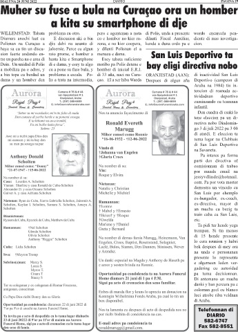 a bin topa cu berdad un problema a escala. Po- di 33 aña, naci na Cura- ORANJESTAD (AAN): di inactividad San Luis