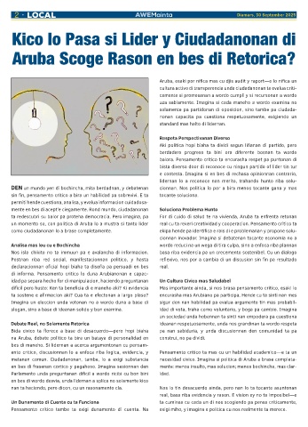 un momento so, con politica di Aruba lo a mustra si tanto lider real cu ta rekeri creatividad y cooperacion. Pensamento critico ta