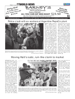 Worker Karina Lopez stands next to her team workers after clashes with police outside the PepsiCo testers set up barricades of back to our jobs and bring