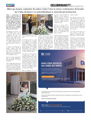 cionalmente di e isla—a ser e bario pobla di Centro Ha- october 1925, Celia Cruz, Den preparacion pa su cente- publicacion. “¡Celia ta biba!”