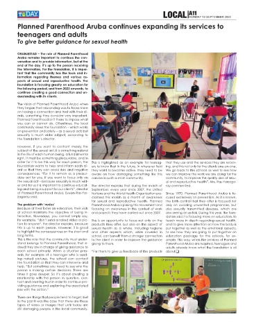 stand belongs to Planned Parenthood, that in- giving to them. Parenthood Aruba are required, teenagers and