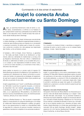cu “Sin duda, pa Arajet, Aruba ta un destinacion cu hopi Cantidad Dia Orario