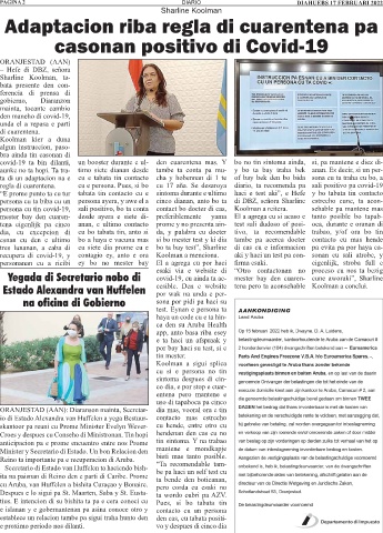 Yegada di Secretario nobo di                         covid-19, cu ainda ta ac-    mester bay den cuaren- cune aworaki”, Sharline