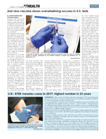 fast enough, as virus cases “That should give us all of confidence that we’re Both vaccines require peo- volunteers’ second dose,