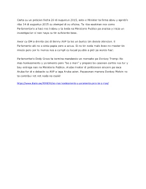 Carta cu un peticion fecha 20 di augustus 2015, anto e Minister ta firma abou y aprob’e