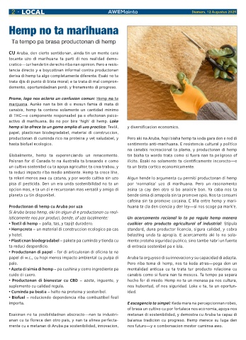 ta rekeri menos awa cu catuna, y por wordo cultiva sin uzo Algun hende lo argumenta cu permiti productonan di hemp