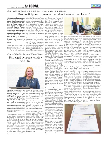 Aruba diabierna 27 di nos Cuido Intensivo ta keda Pisas. Minister-President Pi- dina Leijdekkers. E judicium siman dia 1 di september e di