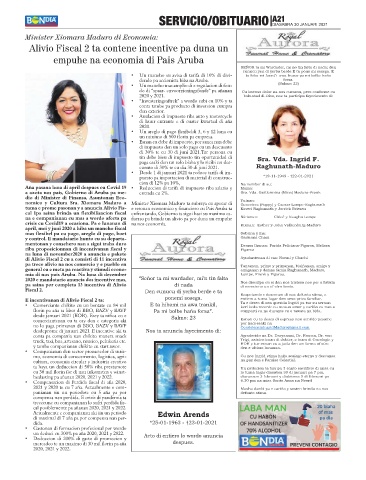 a azota nos pais, Gobierno di Aruba pa me- entrada cu 2%. Sra. Vda. Guillermina (Mina) Maduro-Frank