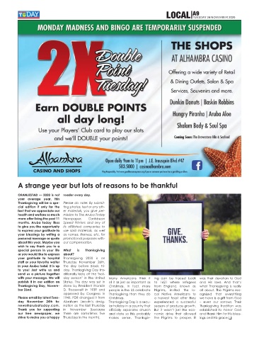 news@arubatoday.com. nation as the last Thursday lar holiday in a country that season of produce growth. Thanksgiving tradition was