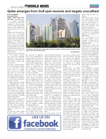 at Northwestern University's Qatar's ruling emir upon his to major world powers. Despite the pressure, Qa- state-linked news outlets,