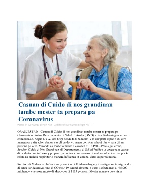 ORANJESTAD - Casnan di Cuido di nos grandinan tambe mester ta prepara pa