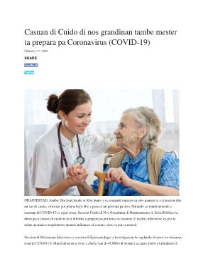 casonan di COVID-19 ta sigui crese, Seccion Cuido di Nos Grandinan di Departamento di Salud Publico ta