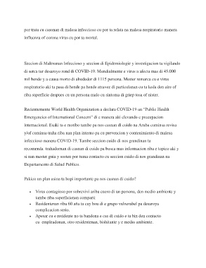 infeccioso manera COVID-19. Tambe seccion cuido di nos grandinan ta