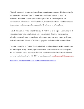 infeccionnan por plama ta pa motibo cu trahadonan no ta pone atencion na medidanan