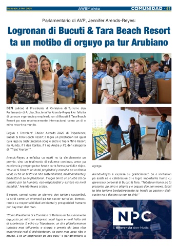 turismo por ta humano, eco-responsabel y exitoso na nivel                  gerencia y personal di Bucuti & Tara. “Tabata un honor pa ta