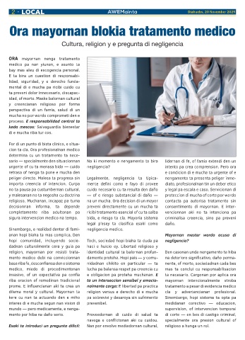 religioso. Muchanan, incapaz pa tuma na un mucha. Ora decision di un mayor contacta pa autorisa tratamento sin