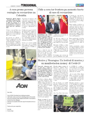 hoben a cura pa via cu nan cion, e no a contagia ningun tur frontera di su pais pa Cu 155 caso, Chile ta e di Den e sentido aki, el a declara