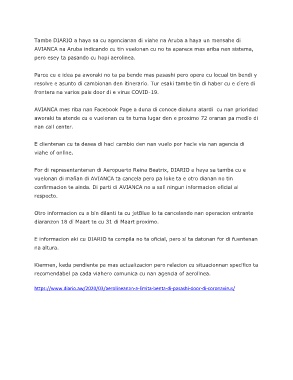 confirmacion te ainda. Di parti di AVIANCA no a sali ningun informacion oficial al