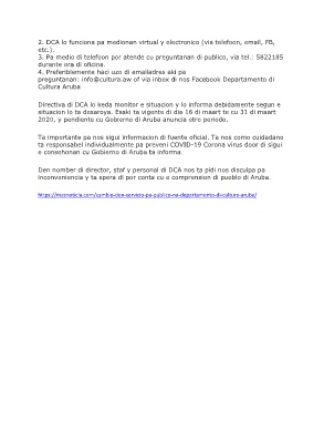 3. Pa medio di telefoon por atende cu preguntanan di publico, via tel.: 5822185