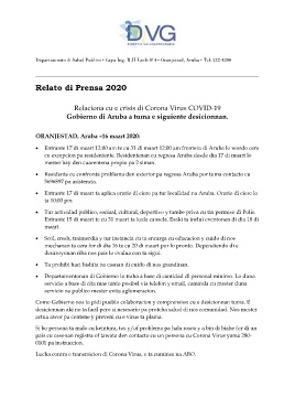 ORANJESTAD, Aruba –16 maart 2020: