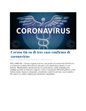 WILLEMSTAD – Corsou a registra su di tres caso positivo di coronavirus COVID-19, e