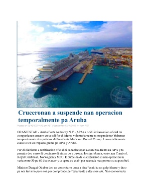 companianan crucero cu ta sali for di Merca voluntariamente ta suspende tur biahenan