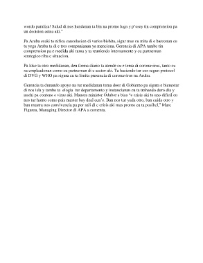 ta yega Aruba ta di e tres companianan ya menciona. Gerencia di APA tambe tin