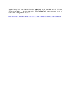 Witgele Kruis etc. pa mas informacion actualisa. Si bo persona ta sinti sintoma
